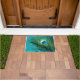 The amazing aqua blue background has a stunning and unique peacock feather. This doormat has a glitter design makes a great contrast with the feather.