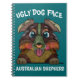 Show your love for all things ugly with this original ugly Australian Shepherd dog face with a bright and colourful notebook cover. The graphic is lovingly hand-painted with abstract patterns in a range of bright colours, and characteristically expressive eyes. Incorporate some fun and quirkiness into your life, it's also the perfect gift for any occasion. his is a perfect gift idea for dog lovers who want to show off their love for their Australian Shepherds —even if they have an ugly face!