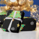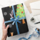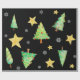 Very unusual and unique gift wrap for your very unique gifts! Christmas trees, snowflakes and stars dance on a black background. By Scarebaby Design.