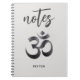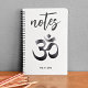 My custom one-off black Om Symbol is a textured metal grid print with 'notes' script text and name on a platinum colour background. Change name and text using the simple Template provided. This notebook contains 80 pages, college lined in black and measures 6.5" x 8.75". Ideal personal budget-friendly gift for that special someone who has everything. See "About This Product" for more information.
