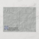 In rich blue shades on grey /white, my interpretation of an ancient design features three rabbits or hares sharing just three ears and chasing each other in a circle. My art was originally painted on glazed and kiln fired tiles as a four-tile mural. The traditional folk verse in the border reads, "Rabbits three and ears as few / Yet each rabbit has its two." This ancient design is found in old art and architecture throughout Europe and the middle east. The corners of the tiles are decorated with stylised birds and floral motifs inspired by chinoiserie blue and white pottery. The background is textured blue with thin grey stripes. The postcard's reverse is textured light grey. A unique, whimsical yet elegant postcard, suitable for any occasion. Original artwork & design by Tuzi Williams.