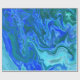 Unique Blue Turquoise Navy Abstract Fluid Art Wrapping Paper