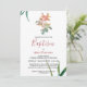 Unique Blush Pink Script Floral Girl Baptism Invitation