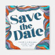Are you looking for a unique retro-modern and trendy wedding save the date? Look at our retro-inspired Unique Bold Boho Groovy Retro Blue Colourful Wavy magnet! This wavy save the date features beautiful watercolor hand-painted wavy lines artwork with a colourful and boho abstract design giving a unique and trendy look, great for a retro wedding theme.