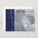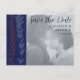 This is a modern design featuring botanical elements on a blue background. With the added option to add your own couples photo. Easy to customise.