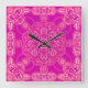 Unique Bright Colourful Pink Purple Ornate Pattern Square Wall Clock