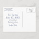 Catch the attention of all your invited guests with this cute, quirky, and unconventional Save-the-Date postcard that features a checklist of important events that lead up to the big day. The checklist text is in an elegant slate-blue font on a white background. The text for the date, location, and the engaged couple is the same elegant font in white on slate-blue band.