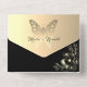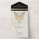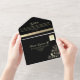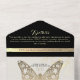 A strikingly unique, luxurious black and white all-in-one wedding invitation, adorned with a romantic faux gold butterfly—symbolising spiritual rebirth, hope, and life. This chic and elegant design radiates both charm and significance. Personalise with your wedding details and RSVP information for a truly special touch.