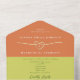 Bring bold, modern style to your wedding with this colorful all-in-one invitation inspired by the newest 2026 trends: Citrus Green, Going Bold color palettes, and the rising Stripes trend. This unique, eco-friendly design features a detachable menu card, allowing guests to keep essential information while reducing paper waste.