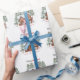 This white wrapping paper features a repeating watercolor motif of a cosy scandi cottage house surrounded by pine trees, set against a snowy white backdrop. The design blends watercolor woodland rustic farm greenery with elegant pine trees merry Christmas charm, offering a refined look for seasonal gifting.