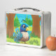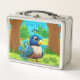 Unique Cute Whimsical Peacock Bird Cartoon Graphic Metal Lunch Box