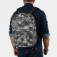 Camo Pattern © Sunny Mars Designs. Cool, men's backpack with a dirty grunge faded black and grey military camouflage pattern background. Perfect gift for men or women in the military, hunters and those looking for a masculine bag.