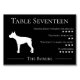 A funny and unique table or team number. Perfect for pet and dog lovers, this black and white monochrome table number is one of a collection of multiple dog breeds. The card reads the table number, followed by The Boxers, and a white outline image of a boxer dog. As a joke about the guests personalities, four dog traits are listed including friendliness towards strangers, drooling potential, tendency to bark and howl and playfulness, alongside a rating out of five stars. The table card is suitable for a wedding, party, quiz or any other event that requires a team, table or seating plan.