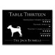 A funny and unique table or team number. Perfect for pet and dog lovers, this black and white monochrome table number is one of a collection of multiple dog breeds. The card reads the table number, followed by The Jack Russell's, and a white outline image of a Jack Russell. As a joke about the guests personalities, four dog traits are listed including friendliness towards strangers, drooling potential, tendency to bark and howl and playfulness, alongside a rating out of five stars. The table card is suitable for a wedding, party, quiz or any other event that requires a team, table or seating plan.