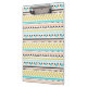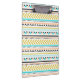 Aztec inspired clipboard with faux glitter gold, aqua blue, white, black and peachy pink geometric pattern.