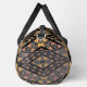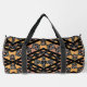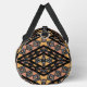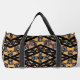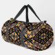 This design is impressive with the large geometric graphic pattern inspired by African Bogolan prints. Mellow earth tones of brown and beige dominate the look along with complementary graphic black and white. It makes a great fashion statement as a duffle bag. Why not travel in style?