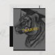 Create unique personalised graduation thank you cards in the convenience of a postcard. The front of the postcard has, "Thanks!" along with a custom tiger grad design. Add your special message on the back along with your name. You can also add the recipient's name and mailing address to have it printed directly on the postcard. Black and gold colour hues. Use the template to personalise.
