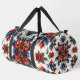 I actually had been searching other sites for a duffle gym bag and I couldn't find any. This one is just what I was looking for with all the features. The inside zip pocket, the outside mesh pocket and LOTS of room inside. Love the printing. Really like how the floral print turned out.