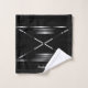 A black and silver geometric Bath towel set with editable name and initial. It's for anyone that loves minimalistic designs. Personalise it with your name and initial.