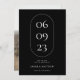 This unique and minimalist wedding save the date card features modern typography in white on a black background. Personalise this monochrome photo save the date card with your own wedding information and your favourite image on the back.
