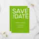 Introducing our Modern Vibrant Green Bold Typography Wedding Save the Date cards. With a fresh and vibrant green palette, these cards exude modernity and style. Bold typography commands attention, ensuring your names and wedding date take centre stage. Set the tone for your special day with these striking invitations that beautifully combine contemporary design with timeless elegance.