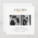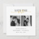 Share the beginning of your wedding story with a save the date that feels soft, romantic, and full of meaning. This modern, elegant design brings your love to the forefront. Two black-and-white photos hold a quiet beauty and capture the moments that led you here. The gold script adds a gentle touch of celebration, a hint of warmth like sunlight on a special day. The clean layout keeps the focus on your connection and the life you are building together.