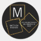 Unique Modern Monogram Gold Frame Black Address Classic Round Sticker