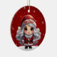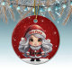 Unique Mrs Santa Claus Xmas Holiday Decor Ceramic Ornament with a red glistening glow capturing the holiday magic and joy of the season. Personalizable Christmas hat with customizable text. Cute whimsical girl cartoon character illustration graphic Female Character. Girly Gift for Woman hanging decoration two-sided design always looks festive and complete, no matter how the decor turns. Order yours today and make your custom keepsake extra special! 🎄🤶🏻