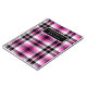 Unique teen girl office stationery notebook with a hot pink, white and black plaid tartan pattern, custom name template / subject title template. A stylish and cool gift for back to school.