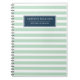 Unique personalised office stationery notebook with a mint green and white stripe pattern, custom name template / subject title template. A cute and cool gift for back to school for people that like custom name gifts that are useful.