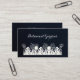 Unique Navy Blue Linen Look Floral Business Card