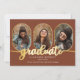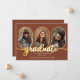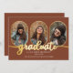 Classy and unique oblong photos 4-photo collage graduation announcement design featuring gold-tone rimmed photo templates and "graduate" gold-toned script text. Add graduate's name, class year and school on front along with three photos and add a separate photo and full announcement on back. Original design by Holiday Hearts Designs with photo template placeholder photos courtesy Omid Armin via Unsplash.