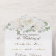 Unique party invitations with white rose and green refers to custom-designed invitations for a special event or celebration that feature a distinct and one-of-a-kind aesthetic.