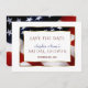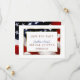 Unique, Patriotic, Elegant USA Flag Gold Frame Wedding card design featuring USA flag frame with gold stroke, red and blue script on a white background; USA flag background on the back. Use Personalise tool to add your info. For matching items, please, visit my Elegant USA Flag Gold Frame Wedding Collection.