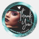 Unique Photo Template Stylish Teal Frame Heart Classic Round Sticker