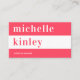 Simple elegant bold typography plain coral red and white minimalist networking business card with a wide horizontal stripe. Suitable for a teacher, writer, designer, photographer, consultant, makeup artist, hairstylist, life coach, or any other independant profession.