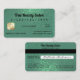 This is the perfect business card for a trendy, stylish, girly, and modern businesswoman. This design features a glamourous and chic faux printed diagonal sparkly mermaid teal glitter and mermaid green ombre gradient design in the cute, unique, and clever style of a credit card. It's the perfect way to promote your business to potential customers.