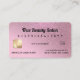 This is the perfect business card for a trendy, stylish, girly, and modern businesswoman. This design features a glamourous and chic faux printed diagonal sparkly rose pink glitter and blush pink ombre gradient design in the cute, unique, and clever style of a credit card. It's the perfect way to promote your business to potential customers.
