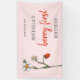Sweet and unique pink strawberry welcome banner to greet your guests on her first birthday party. Adorable illustration of a strawberry plant with flowers and one strawberry.