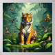 Unique Tiger Sitting in Jungle with Birds around Poster
