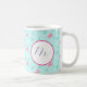 This tropical Christmas mug features a watercolor pink flamingo pattern on a pale turquoise background with snowflakes. Use the template field to add your custom monogram. A charming holiday gift for the flamingo lover in your life. To see pinkmas decor and more unique Christmas gifts visit www.zazzle.com/dotellabelle