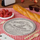 Beautiful face powder advertisement printed in shades of cream and brown. A very unique paper plate for your next gathering.
