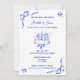 Unique blue whimsical Hand Drawn Contemporary Retro French Fun Invitation with a bow frame, a whimsical trendy artwork for your french wedding by Savanamm