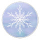 Deck the halls with this unique ceramic cabinet knob featuring a white snowflake over a soft artistic background of teal, blue and purple.