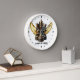 Black and white wall clock with an elegant drawing that suggests luxury, unique kings of the game