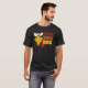 I give wanted to give this a 4 instead of a 5 because these Basic DARK T0shirts run unexpectedly SLIM or Narrow. Which is great if you do not have a potbelly, but I have a paunch. It isn't the shirt's fault that I've got a beer belly. The design and shirt itself is a quality cotton shirt. The color is more of a deep purple, but still a very pretty color. The Basic DARK T-shirts run a bit SLIMMER than the Basic Ts. The neck is a fraction narrower (or seems to be narrower) also. I'm a paunchy middle-aged woman and my neck is 12 inches (31cm) thick and the neckline fell about the same as in the photo of the man, and I had the desire to tug it a bit. So if you're a thick necked man or like loose shirts, be aware these are slimmer shirts. Once I get rid of my lockdown paunch it'll look great. The shirt washed well in cold water with no apparent bleeding. We don't have a dryer, so it hung dry. Did not shrink. Love the colors and the design. The design looks smaller on my shirt than it does on the model on-line. But still, it looks good on the shirt. The printing looks as it does on the model, just the size seems fractionally smaller. Washed garment in cold water, hung dry and design appeared unaffected.