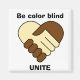 A black man and a white men shaking hands. Heart shaped symbol or logo. Anti-racism slogan on magnet