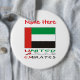Personalized button pin features the UAE Flag with the words UNITED ARAB EMIRATES, beneath the flag in the colors of the flag. Above, a space to personalize with a name, in red letters, for yourself or a little gift. Fun for family reunions. Cool stocking stuffer.