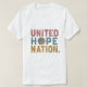 Vintage-Inspired: The text "United Hope Strong Nation" is written in a bold, blocky font with each letter in a different pastel colour and a slightly distressed texture. The overall feel is vintage-inspired.