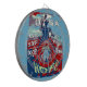 Blue: The dominant colour, used for the background and details, provides a cool and calming base for the composition.